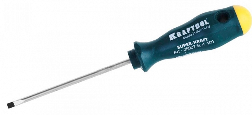 Отвертка Kraftool 25007-4.0-100 Предназначена для монтажа и демонтажа резьбовых соединений Особенности: Двухкомпонентная противоскользящая рукоятка