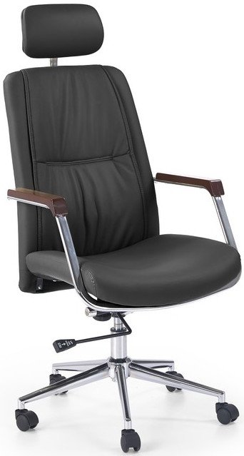 Для руководителя; материал обивки: искусственная кожа; механизм качения; ролики; регулировка высоты; подлокотники; размеры: 58/67/120-126 см; цвет: чёрный, серый.