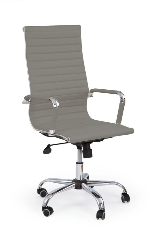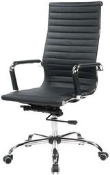 Для руководителя; материал обивки: искусственная кожа; механизм качения; ролики; регулировка высоты; подлокотники; размеры: ширина: 55 см, глубина: 68 см, высота спинки: 107-115 см, высота сиденья: 47-55 см.