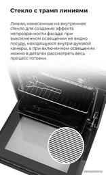 • Режимы работы двухсторонний нагрев, большой гриль, вентиляционный нагрев, гриль + конвекция, нижний нагрев + конвекция, нижний + вентиляционный нагрев, двухсторонний нагрев + конвекция, размораживание