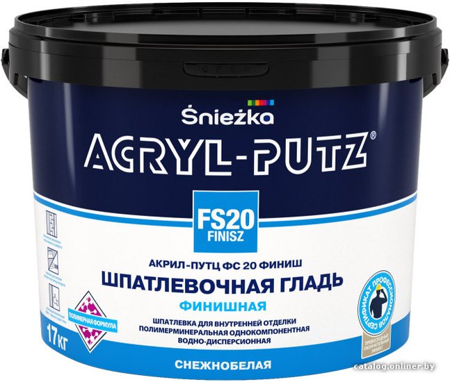 - Готовая к употреблению шпаклевка наивысшего качества, особенно рекомендуется для завершительного, финишного выравнивания стен и потолков вручную и машинным способом. Во время применения сохраняет постоянную консистенцию, благодаря чему может применяться длительное время. Неизрасходованная масса в плотно закрытой упаковке сохраняет пригодность к дальнейшему применению. После высыхания исключительно легко шлифуется, сохраняя хорошие прочностные параметры. Оставляет белоснежные и идеально гладкие поверхности под покраскуACRYL-PUTZ® FS20 FINISZ может применяться внутри помещений на бетонных, цементно-известковых, гипсовых, гипсокартонных основаниях.ACRYL-PUTZ® FS20 FINISZ содержит специальную полимерную смолу, которая значительно повышает ее прочностные параметры и определяет отличную адгезию к шпаклевки к основанию.Соответственно конфигурированные компоненты в сочетании со специальными наполнителями со слоистой структурой делают завершительную отделку поверхностей, выполненных при помощи ACRYL-PUTZ® FS20 FINISZ исключительно легкой – шпаклевка прекрасно шлифуется. Готовая к употреблению шпаклевка наивысшего качества, особенно рекомендуется для завершительного, финишного выравнивания стен и потолков вручную и машинным способом. Во время применения сохраняет постоянную консистенцию, благодаря чему может применяться длительное время. Неизрасходованная масса в плотно закрытой упаковке сохраняет пригодность к дальнейшему применению. После высыхания исключительно легко шлифуется, сохраняя хорошие прочностные параметры. Оставляет белоснежные и идеально гладкие поверхности под покраскуACRYL-PUTZ® FS20 FINISZ может применяться внутри помещений на бетонных, цементно-известковых, гипсовых, гипсокартонных основаниях.ACRYL-PUTZ® FS20 FINISZ содержит специальную полимерную смолу, которая значительно повышает ее прочностные параметры и определяет отличную адгезию к шпаклевки к основанию.Соответственно конфигурированные компоненты в сочетании со специальными наполнителями со слоистой структурой делают завершительную отделку поверхностей, выполненных при помощи ACRYL-PUTZ® FS20 FINISZ исключительно легкой – шпаклевка прекрасно шлифуется.