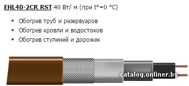 • Удельная мощность кабеля 40 Вт/м (при 0°С)