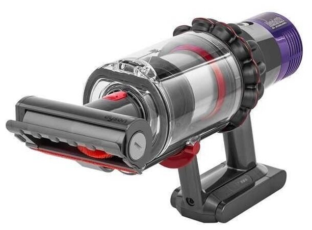 Пылесос Dyson Cyclone V10 Absolute вертикального типа предназначен для проведения сухой уборки в помещении и в салоне автомобиля, так как легко трансформируется в ручную модель путём отсоединения цельной металлической трубки. Аккумулятор ёмкостью 2600 мА*ч обеспечивает до 60 минут бесперебойной работы. О низком заряде батареи сообщит светодиодный индикатор. Максимальная мощность всасывания — 151 Вт, конструкция циклонного фильтра позволяет сохранять постоянную тягу даже при значительном заполнении пылесборника. Аккумулятор заряжается за 3,5 ч, для этого достаточно поместить модель на парковку. Функция самодиагностики неисправностей и автоматическое отключение устройства при достижении критической температуру гарантируют безопасность использования.