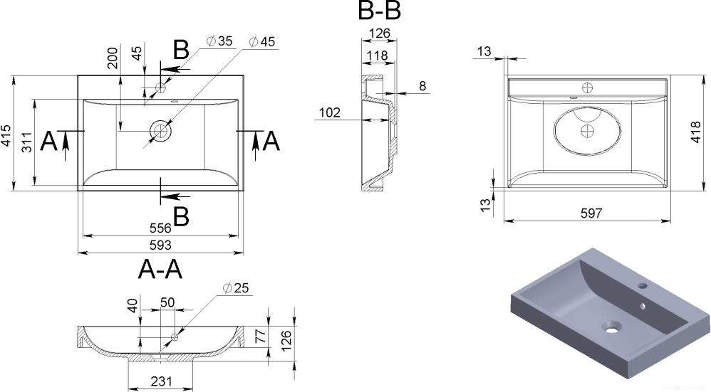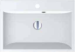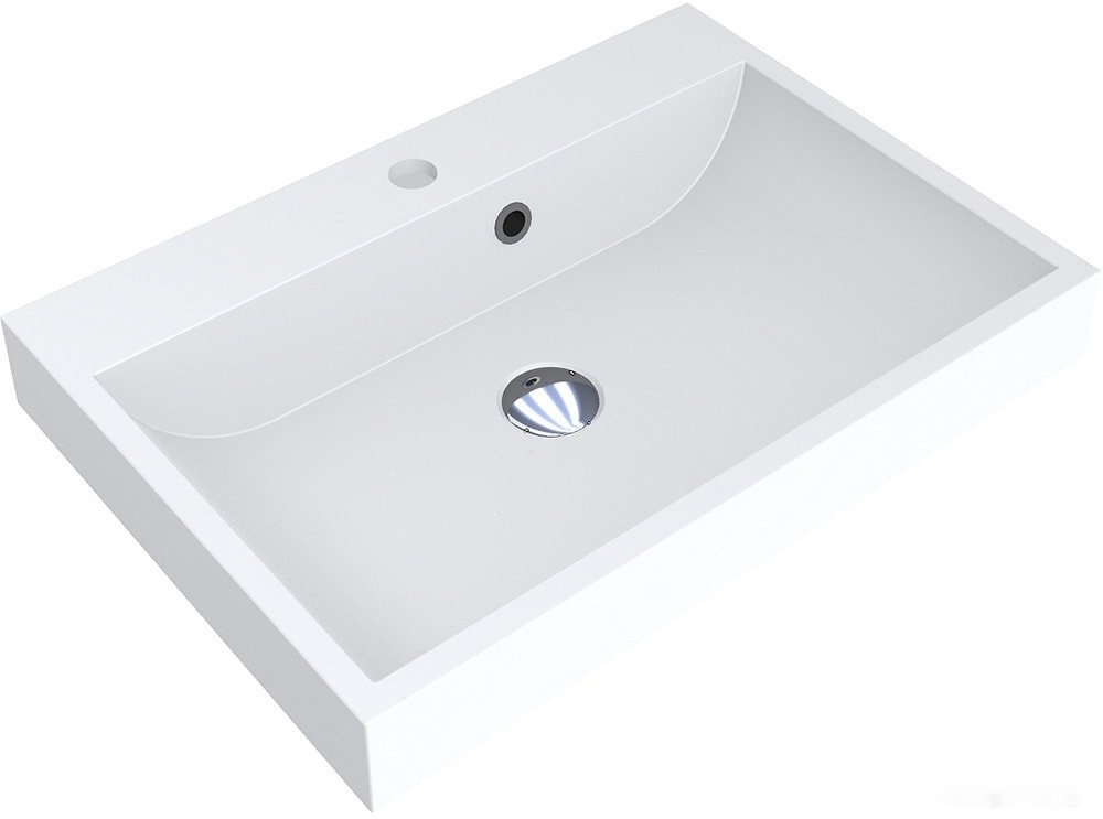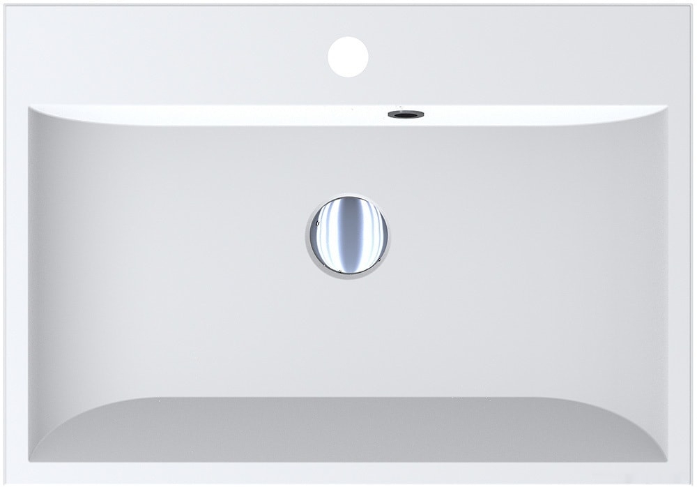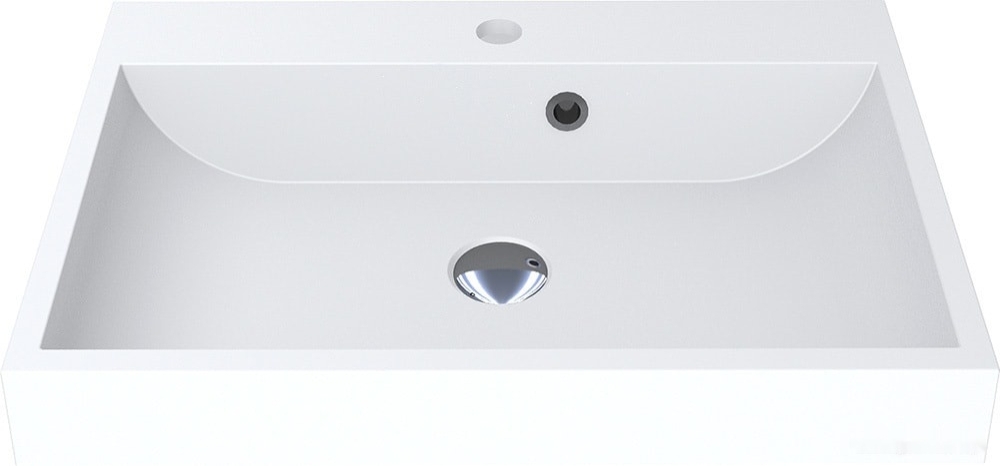 Умывальник врезной, на тумбу, на столешницу, ширина 597 мм, длина 418 мм, форма: прямоугольная, искусственный мрамор, отверстие под смеситель, отверстие под перелив.