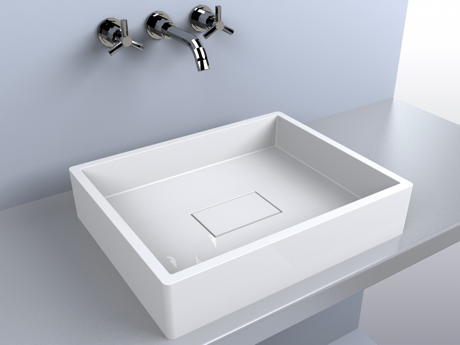 Умывальник на столешницу, ширина 490 мм, длина 391 мм, форма: прямоугольная, искусственный мрамор.