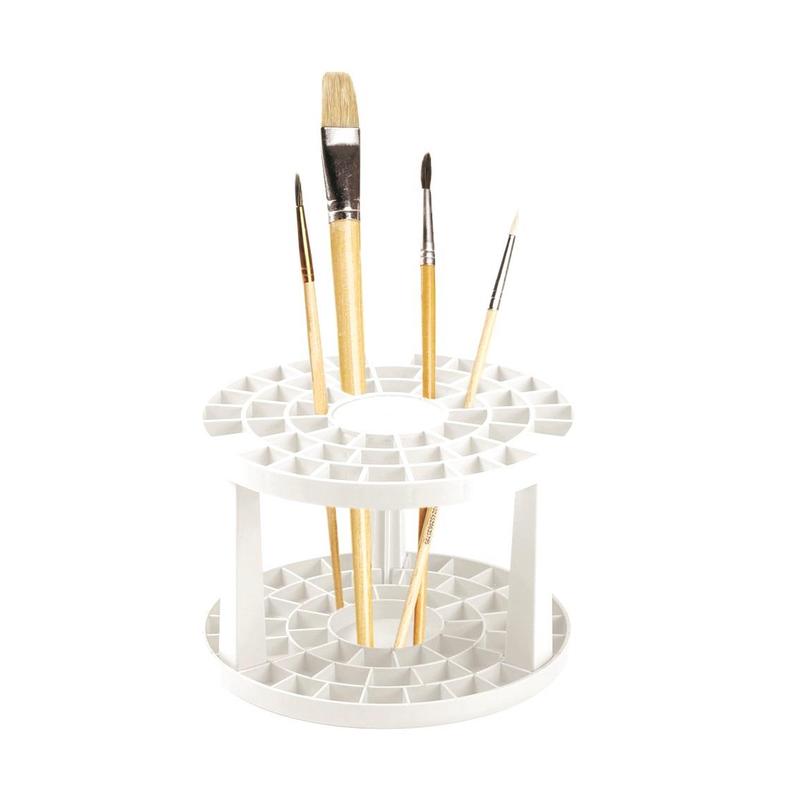 Подставка для кистей «Стамм» — это легкий и прочный аксессуар для художественных работ. Главное преимущество подставки — это компактное вертикальное размещение большого количества различных кистей одновременно. Сборная конструкция также удобна при транспортировке и хранении.Размеры подставки: диаметр 145 мм, высота 100 мм.Упаковка: пакет с подвесом и цветным вкладышем.Материал: полистирол.
