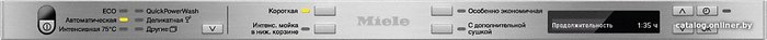 - Дополнительные опции сокращение времени мойки, дополнительная сушка, усиление интенсивности мойки (гигиеническая мойка), половинная загрузка (экономия воды)