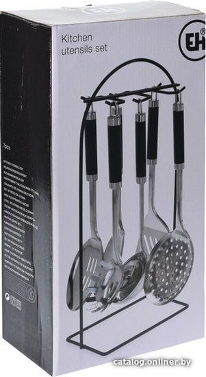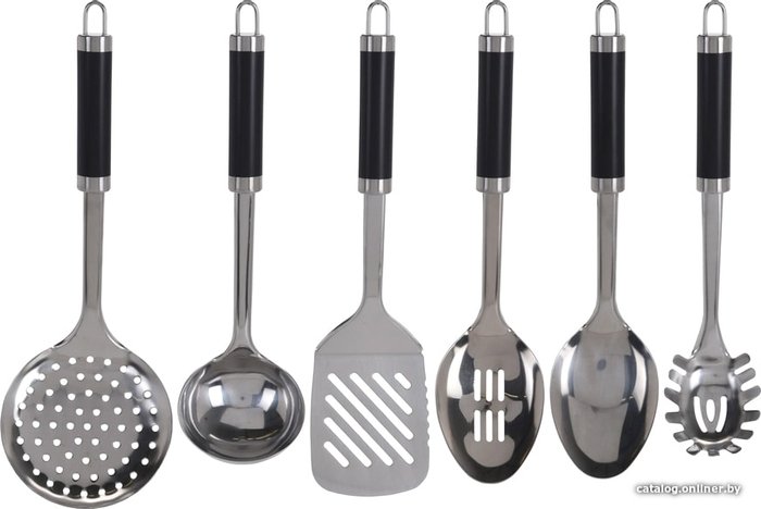 - Состав набора ложка, ложка для спагетти, лопатка, подставка, половник, шумовка