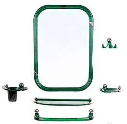 - Элементы набора зеркало, полка, мыльница, полотенцедержатель, стакан, крючок