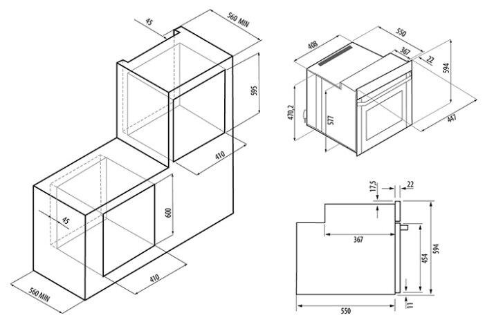 - Режимы нагрева верхний нагрев, верхний нагрев + нижний нагрев, конвекция, нижний нагрев + конвекция, гриль + конвекция, большой гриль