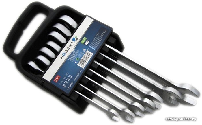 - Комплектация Набор комбинированных ключей с односторонней трещоткой с 72 зубьями: 10/ 12/ 13/ 14/ 15/ 17/ 19 мм.