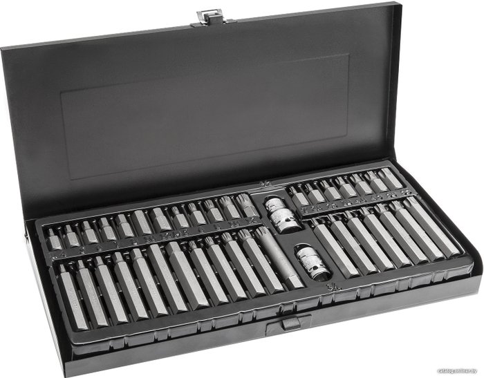 • Комплектация - Насадки Torx, 30 мм: T20/ T25/ T30/ T40/ T45/ T50/ T55- Насадки Torx, 75 мм: T20/ T25/ T30/ T40/ T45/ T50/ T55- Насадки Spline, 30 мм: M5/ M6/ M8/ M10/ M12- Насадки Spline, 75 мм: M5/ M6/ M8/ M10/ M12- Насадки шестигранные, 30 мм: H4/ H5/ H6/ H7/ H8/ H10/ H12- Насадки шестигранные, 75 мм: H4/ H5/ H6/ H7/ H8/ H10/ H12- Держатель для бит 10 мм: 3/8”- Держатель для бит 10 мм: 1/2”- Кейс