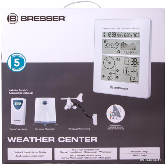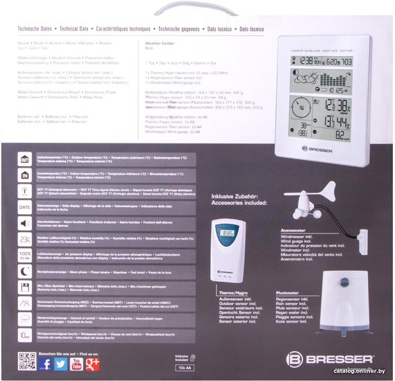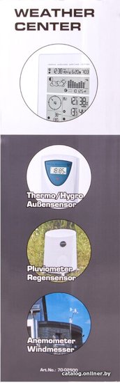 КомплектацияМетеостанцияНаружный датчик температуры/влажности/давления (термометр, гигрометр, барометр)ВетромерДождемерИнструкция по эксплуатации и гарантийный талон