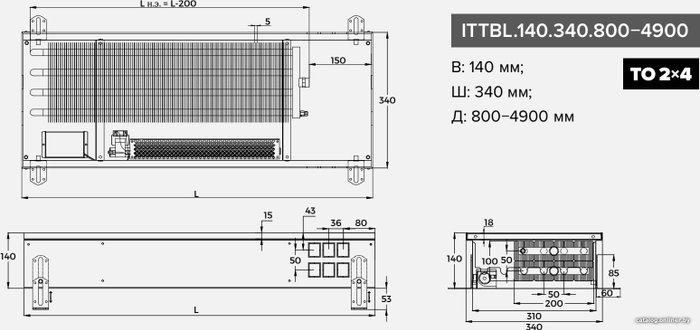 • Тепловой поток (дельтаТ=50K) 9 500 Вт