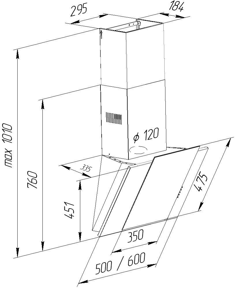 Настенная; наклонная кухонная вытяжка; ширина 50 см; тип очистки воздуха: отвод; количество скоростей 3; макс производительность 700 м3/ч; кнопочное управление; металлический жироулавливающий фильтр; макс уровень шума 59 дБ.