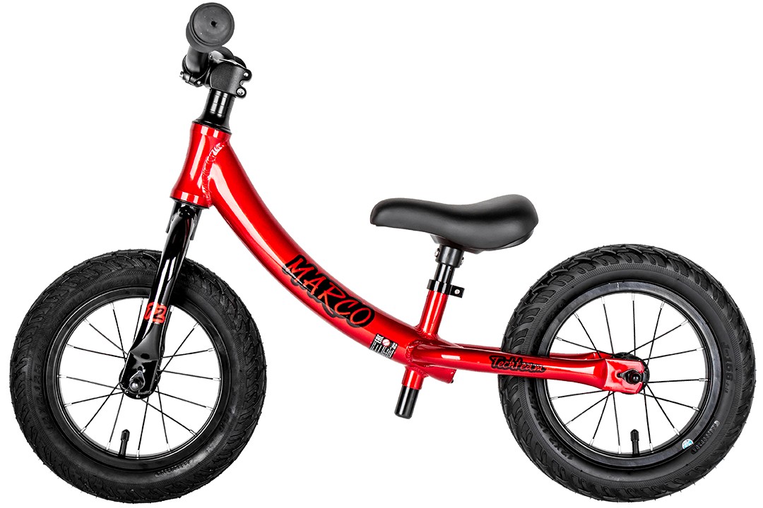 TechTeam Marco - беговел с надувными колёсами 12". Рулевая на промподшипниках. Сиденье поднимается очень высоко, поэтому в реальности модель может использоваться до 5-6 лет.