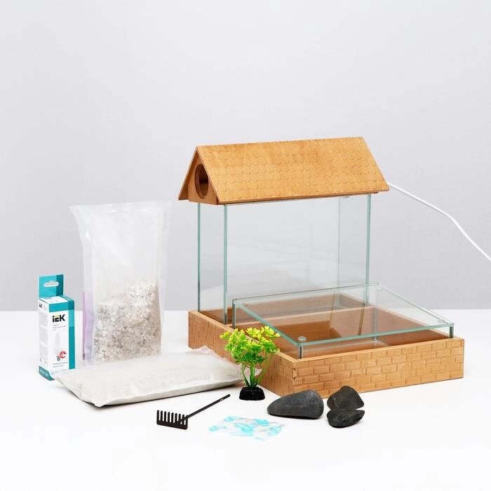 Аквариум с мини террариумом 3,8 л, 35 x 30 x 27 см, кедр