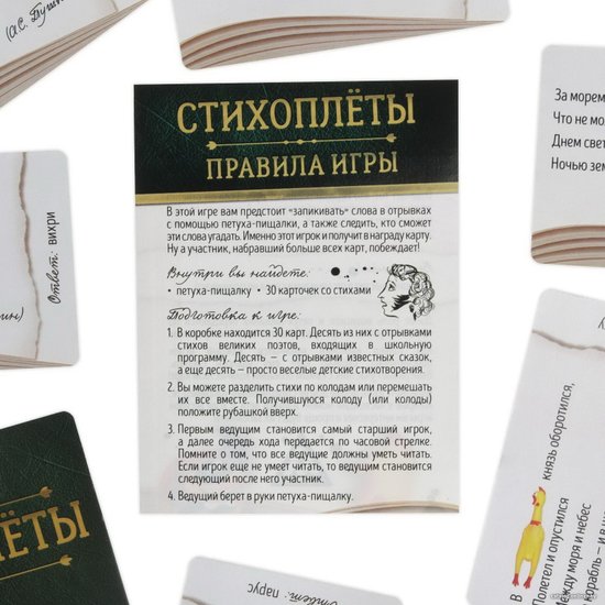 • Комплектация - 30 карточек со стихами;- петуха-пищалку;- правила игры.