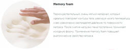 • Материалы латекс (эко), пеноматериал с памятью формы (MemoryFoam), пеноматериал (Sea Foam )