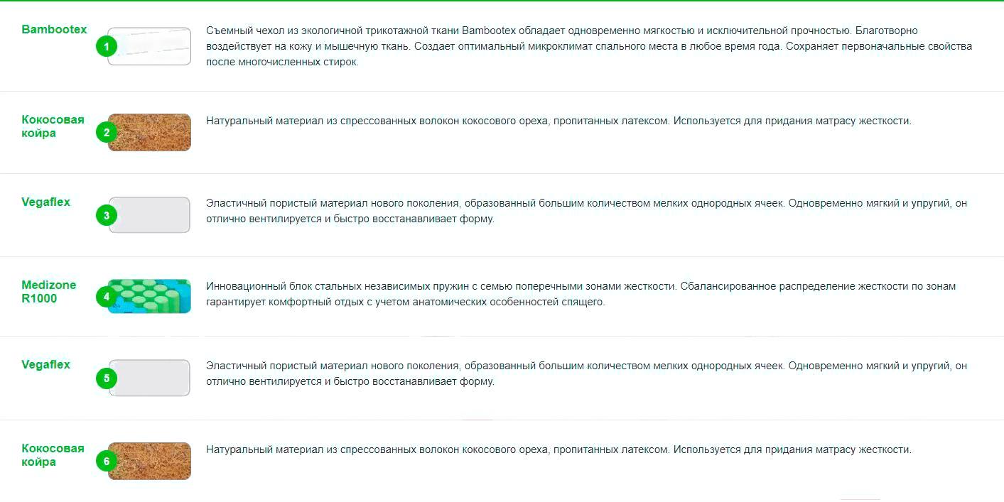 - Технологии X-Frame (Vegas), Sleep&Clean (Vegas), Tricover (Vegas), Medizone (Vegas)
