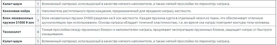 • Вспомогательные материалы технохолст, пеноматериал (по всему периметру матраса)