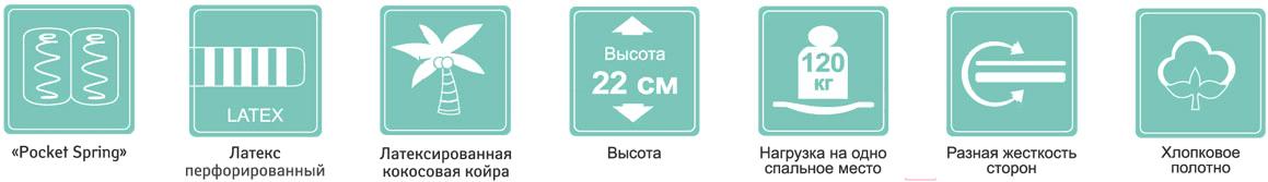 • Материалы кокосовая койра (латексированная, 2 слоя: 10/20 мм), латекс (перфорированный, 20 мм)