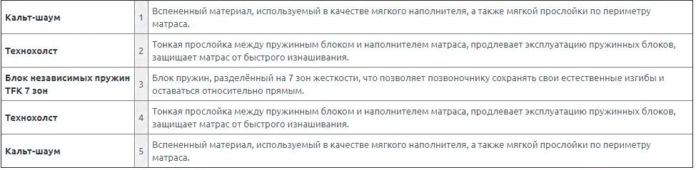• Вспомогательные материалы технохолст, пеноматериал (кальт-шаум по периметру матраса)