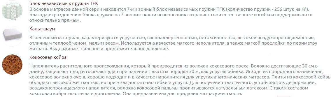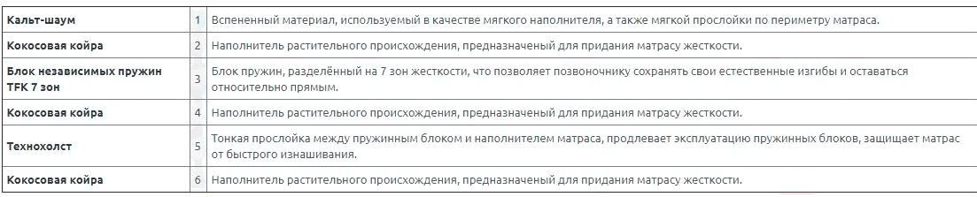 • Вспомогательные материалы технохолст, мебельная сетка, пеноматериал (кальт-шаум по всему периметру матраса)