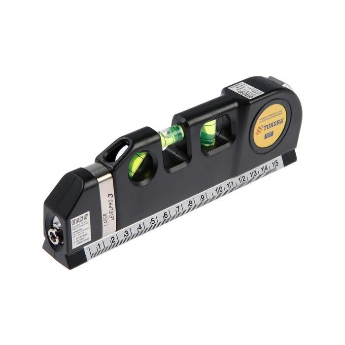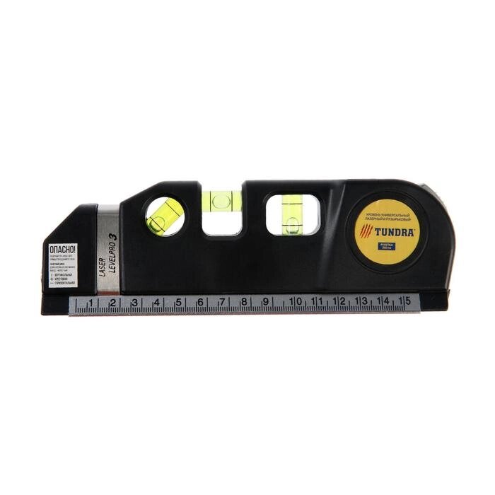 Уровень универсальный 4 в 1 TUNDRA, лазерный, пузырьковый, рулетка 2.5 м, линейка 150 мм