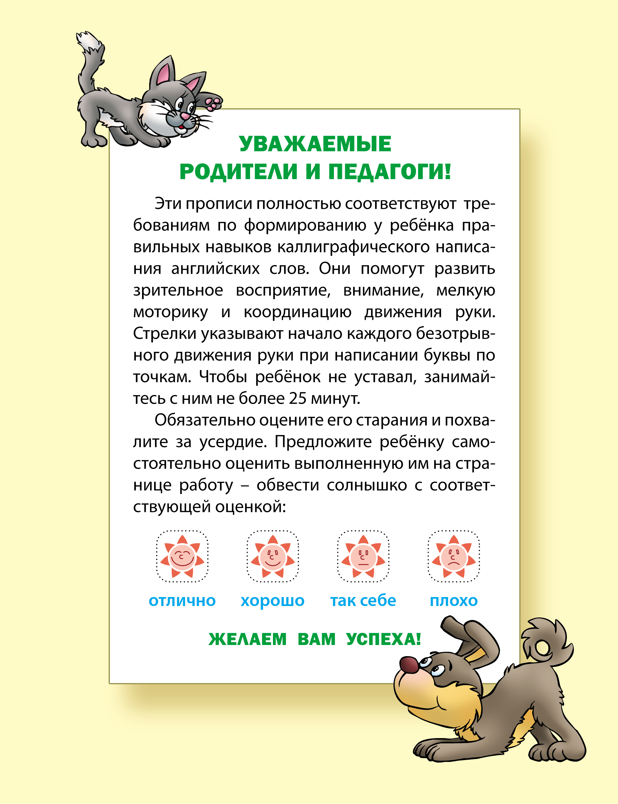 Эти прописи полностью соответствуют требованиям по формированию у ребенка правильных навыков каллиграфического написания английских слов. Они помогут развить зрительное восприятие, внимание, мелкую моторику и координацию движения руки. Стрелки указывают начало каждого безотрывного движения руки при написании буквы по точкам