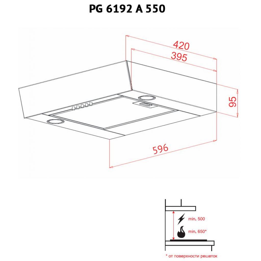 Витяжка PERFELLI PG 6192 A 550 W LED GLASS відрізняється підвищеною продуктивністю втягування 550 м3/год, забезпечуючи ефективне виведення запахів під час роботи на кухні.