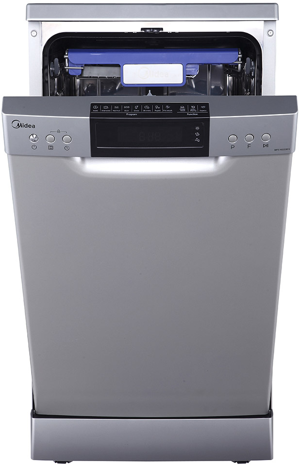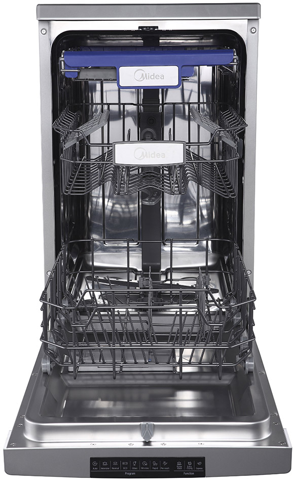 Отдельно стоящая посудомоечная машина, Вместимость комплектов посуды 10, расход воды за цикл 10 л, класс энергопотребления А, класс мойки A, класс сушки A, электронное управление, инверторный двигатель, дисплей, защита от детей, 1/2 загрузки, регулируемая по высоте корзина для посуды, программа интенсивной мойки, программа бережного мытья, программа предварительного ополаскивания, уровень шума 47 дБ, ширина 44.8 см, глубина 61 см, высота 84.5 см..