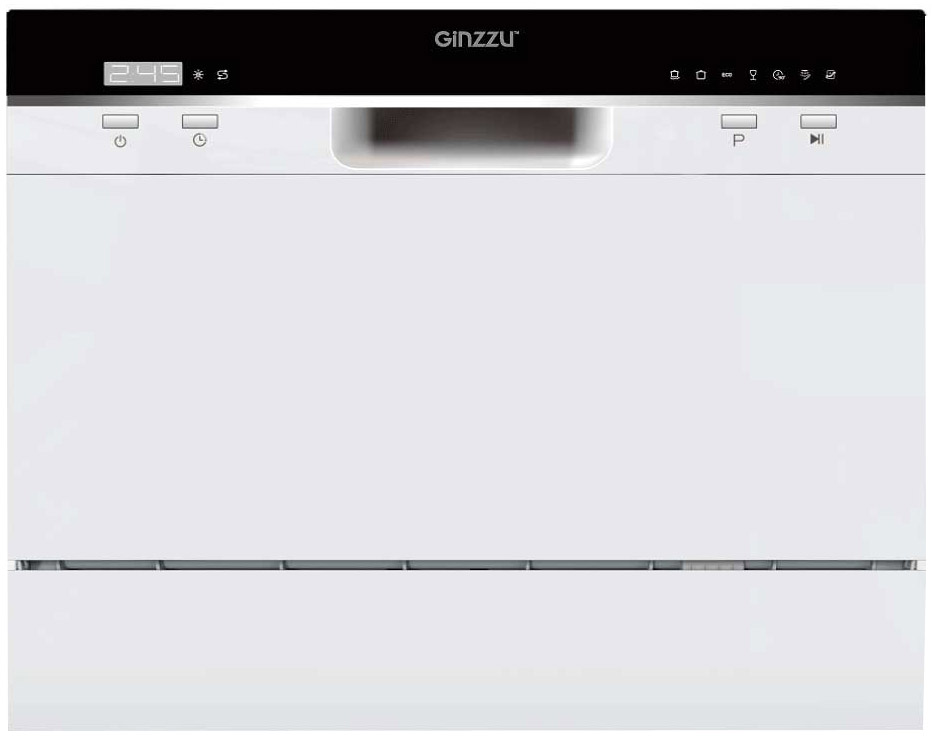 Отдельно стоящая посудомоечная машина, Вместимость комплектов посуды 6, расход воды за цикл 7 л, класс энергопотребления A+, класс мойки A, класс сушки A, электронное управление, дисплей, программа интенсивной мойки, программа бережного мытья, уровень шума 49 дБ, ширина 55 см, глубина 50 см, высота 43.8 см.
