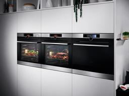 Электрический духовой шкаф, объем 74 л, мощность подключения 3500 Вт, класс энергопотребления A+, максимальная температура 250 °С, способ очистки пиролиз, переключатели сенсорные, количество стекол 3, гриль электрический, автоматическое приготовление, телескопические направляющие, температурный зонд, дверца духовки откидная, дисплей, таймер с отключением, защитное отключение, защита от детей, ширина ниши для встраивания 56 см..