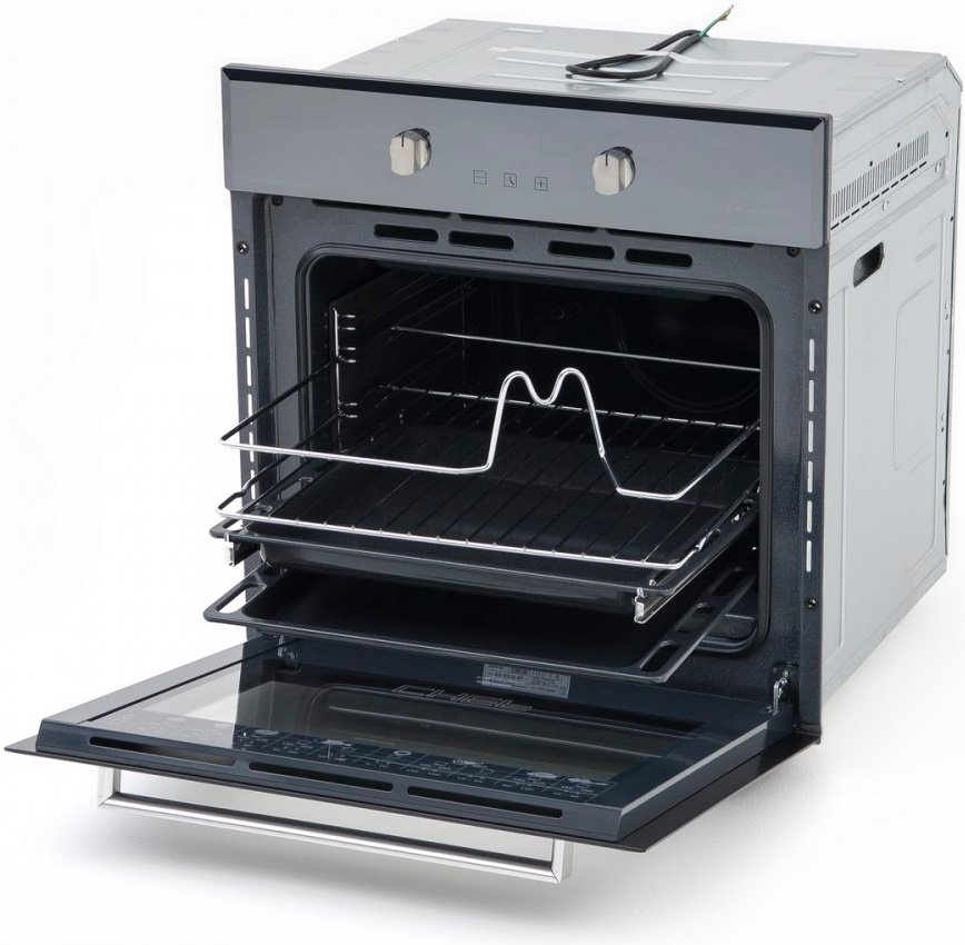 Электрический духовой шкаф, объем 66 л, мощность подключения 2560 Вт, класс энергопотребления A+, максимальная температура 250 °С, способ очистки каталитическая, переключатели поворотные, количество стекол 3, гриль электрический, телескопические направляющие, вертел, дверца духовки откидная, дисплей, таймер с отключением, ширина ниши для встраивания 56 см.