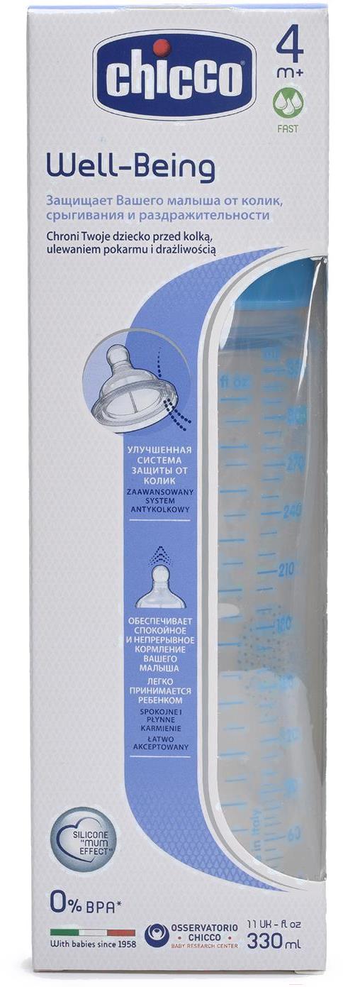 Бутылочка для кормления Chicco Well-Being Boy с силиконовой соской / 310205116 (330мл)