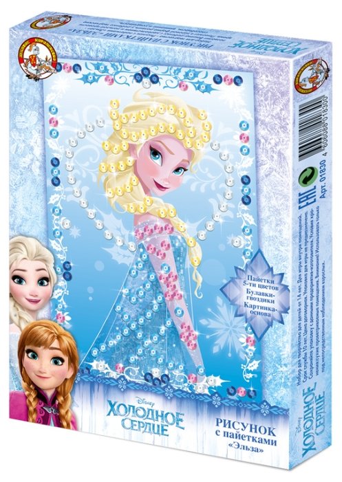 - Подробная комплектация картина-основа, пайетки 5 цветов, булавки-гвоздики, планшет, инструкция