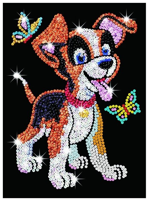- Подробная комплектация основа из пенопласта,лист бумаги с нанесенной картинкой, булавки, разноцветные блестки, инструкция
