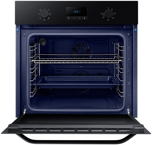 Электрический духовой шкаф, объем 70 л, мощность подключения 3500 Вт, класс энергопотребления A, максимальная температура 250 °С, способ очистки ручной, переключатели утапливаемые поворотные, количество стекол 3, гриль электрический, дверца духовки откидная, дисплей, таймер звуковой, защита от детей, ширина ниши для встраивания 56 см.