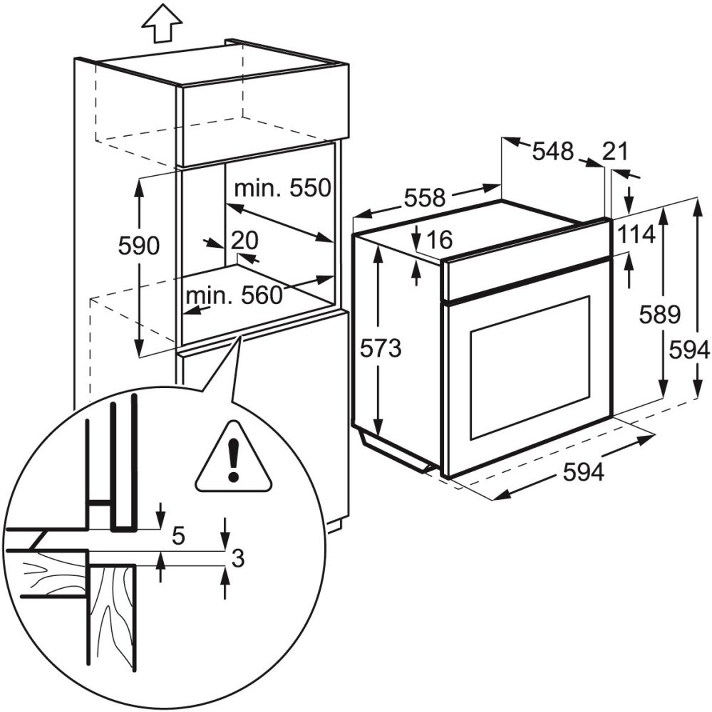 Электрический духовой шкаф, объем 72 л, мощность подключения 2780 Вт, класс энергопотребления A, максимальная температура 250 °С, способ очистки эмаль легкой очистки, переключатели поворотные, количество стекол 3, гриль электрический, дверца духовки откидная, таймер звуковой, защитное отключение, ширина ниши для встраивания 56 см.