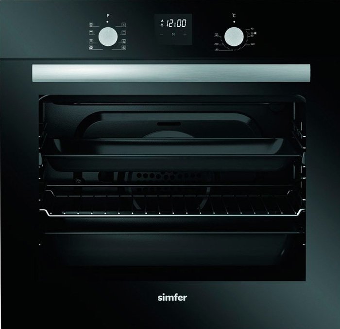 Электрический духовой шкаф, объем 58 л, класс энергопотребления A, максимальная температура 240 °С, способ очистки ручной, переключатели утапливаемые поворотные/сенсорные, количество стекол 2, гриль электрический, дверца духовки откидная, дисплей, таймер звуковой, защитное отключение, ширина ниши для встраивания 56 см.