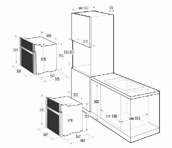 - Глубина ниши для встраивания, см 55