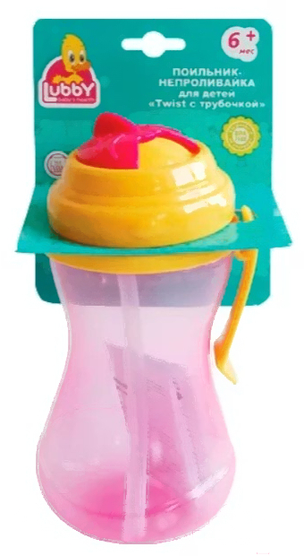 Поильник Lubby Twist с трубочкой / 11836 (желтый/розовый)