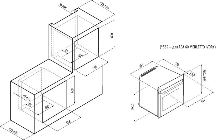 - Глубина ниши для встраивания, см 57.3