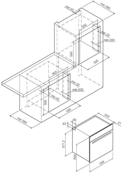 - Высота ниши для встраивания, см 59.5