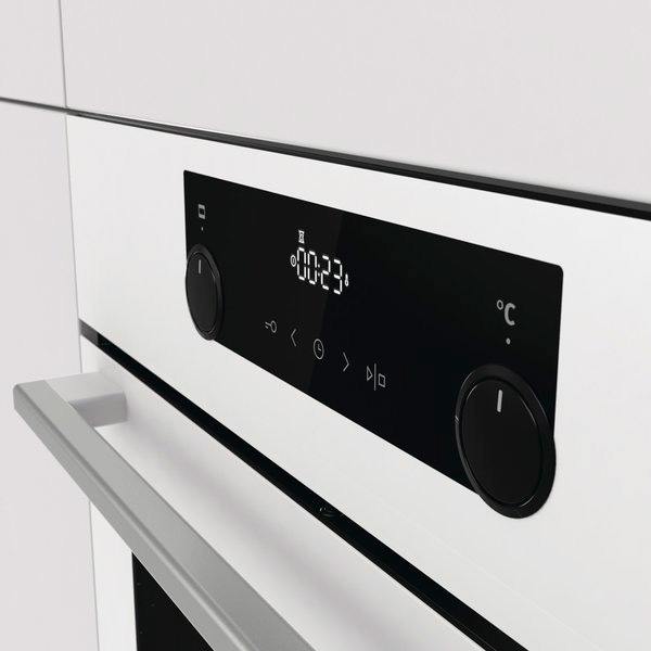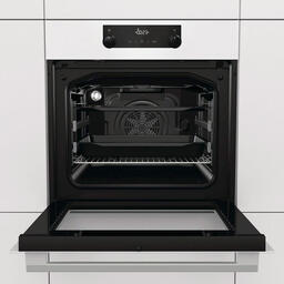 Электрический духовой шкаф, объем 71 л, мощность подключения 2700 Вт, класс энергопотребления A, максимальная температура 275 °С, способ очистки аквачистка, переключатели утапливаемые поворотные/сенсорные, количество стекол 2, гриль электрический, телескопические направляющие, дверца духовки откидная, дисплей, таймер с отключением, защитное отключение, защита от детей, ширина ниши для встраивания 56 см..