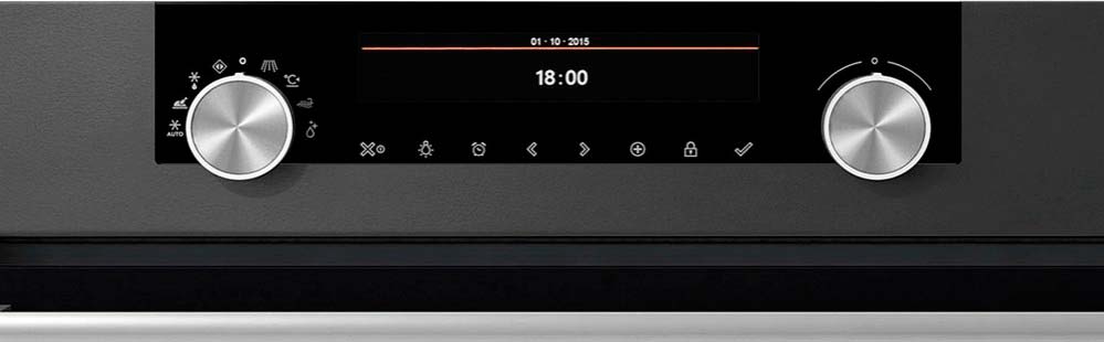 Электрический духовой шкаф, объем 51 л, мощность подключения 2600 Вт, класс энергопотребления A+, максимальная температура 275 °С, способ очистки аквачистка, переключатели поворотные, количество стекол 3, гриль электрический, автоматическое приготовление, дверца духовки откидная, дисплей, таймер с отключением, защитное отключение, защита от детей, ширина ниши для встраивания 56 см.