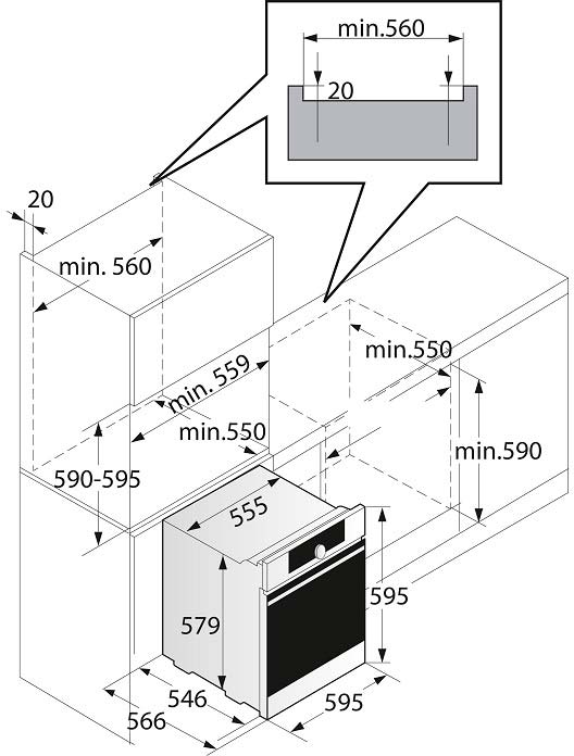 - Ширина ниши для встраивания, см 56