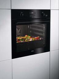 Электрический духовой шкаф, объем 71 л, мощность подключения 3500 Вт, класс энергопотребления A+, максимальная температура 300 °С, способ очистки каталитическая, переключатели утапливаемые поворотные/кнопочные, количество стекол 3, гриль электрический, телескопические направляющие, температурный зонд, дверца духовки откидная, дисплей, таймер с отключением, защитное отключение, защита от детей, ширина ниши для встраивания 56 см..