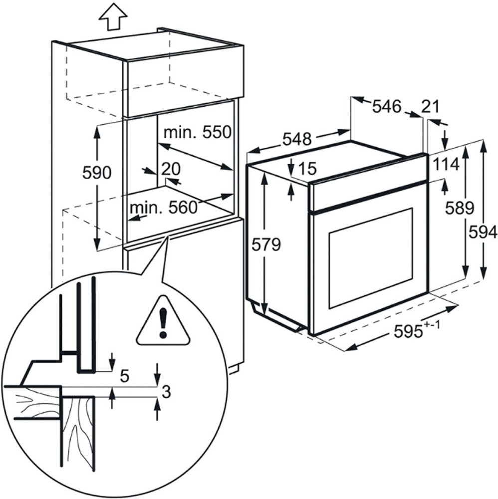 Электрический духовой шкаф, объем 74 л, мощность подключения 3480 Вт, класс энергопотребления A+, максимальная температура 250 °С, способ очистки пиролиз, переключатели утапливаемые поворотные/кнопочные, количество стекол 3, гриль электрический, дверца духовки откидная, дисплей, таймер с отключением, защитное отключение, защита от детей, ширина ниши для встраивания 56 см.